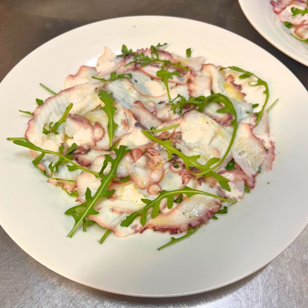 Chobotnice, rukolový salát, citronová zálivka, omáčka z chobotnice | Octopus, rocket salad, citronette, octopus sauce