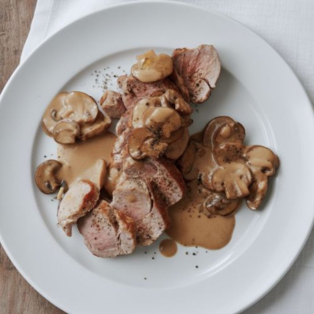 sous-vide pork tenderloin with wild mushroom sauce